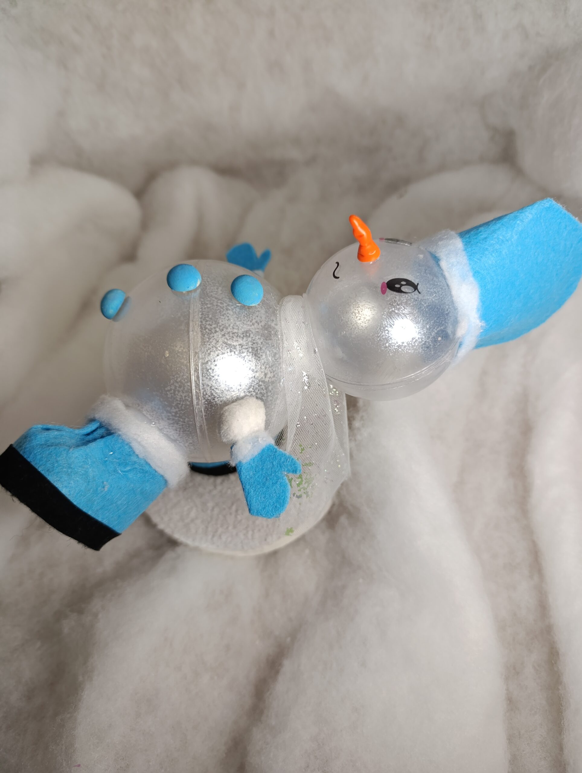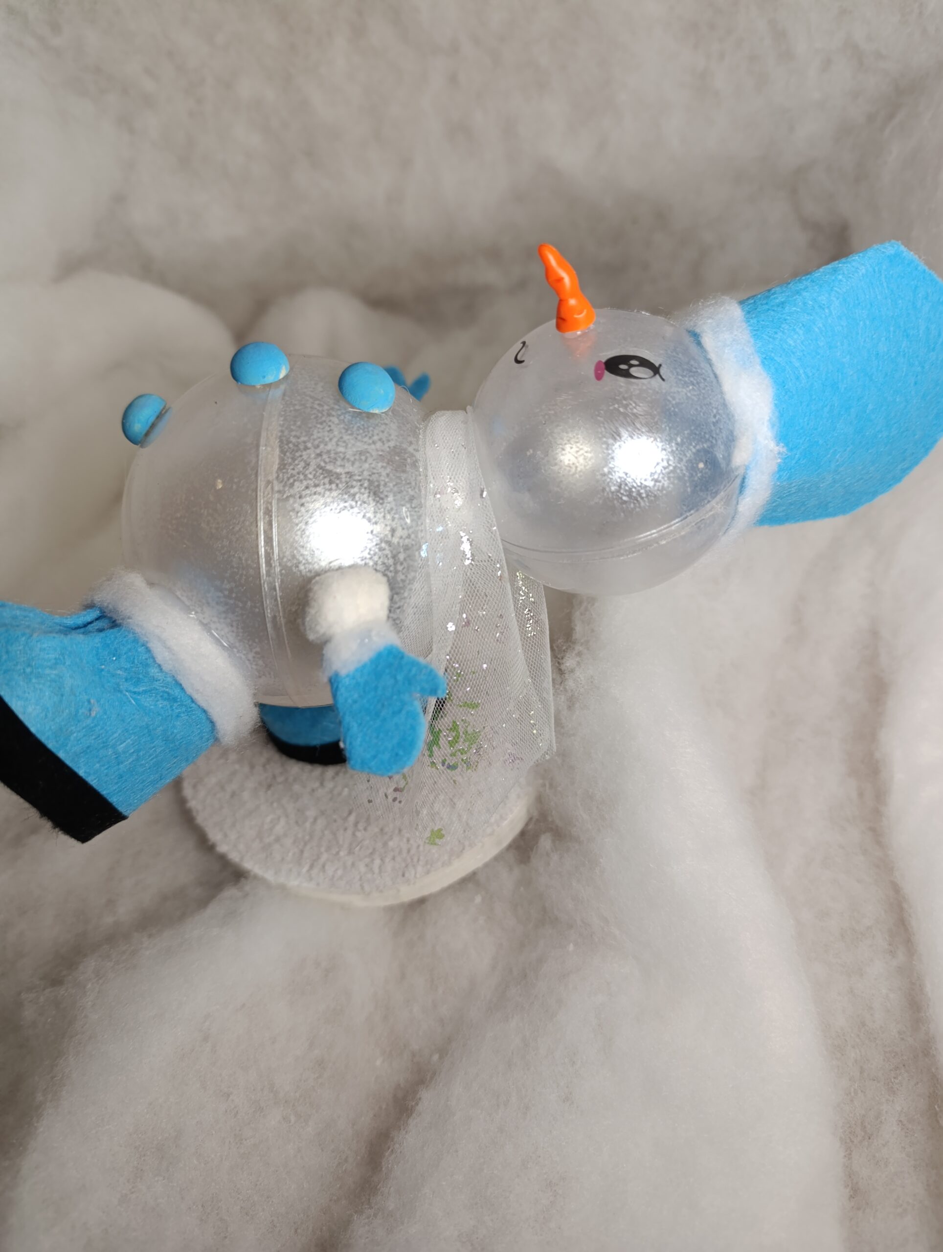 Matériaux : feutrine bleu ciel, boules givrées, neige artificielle