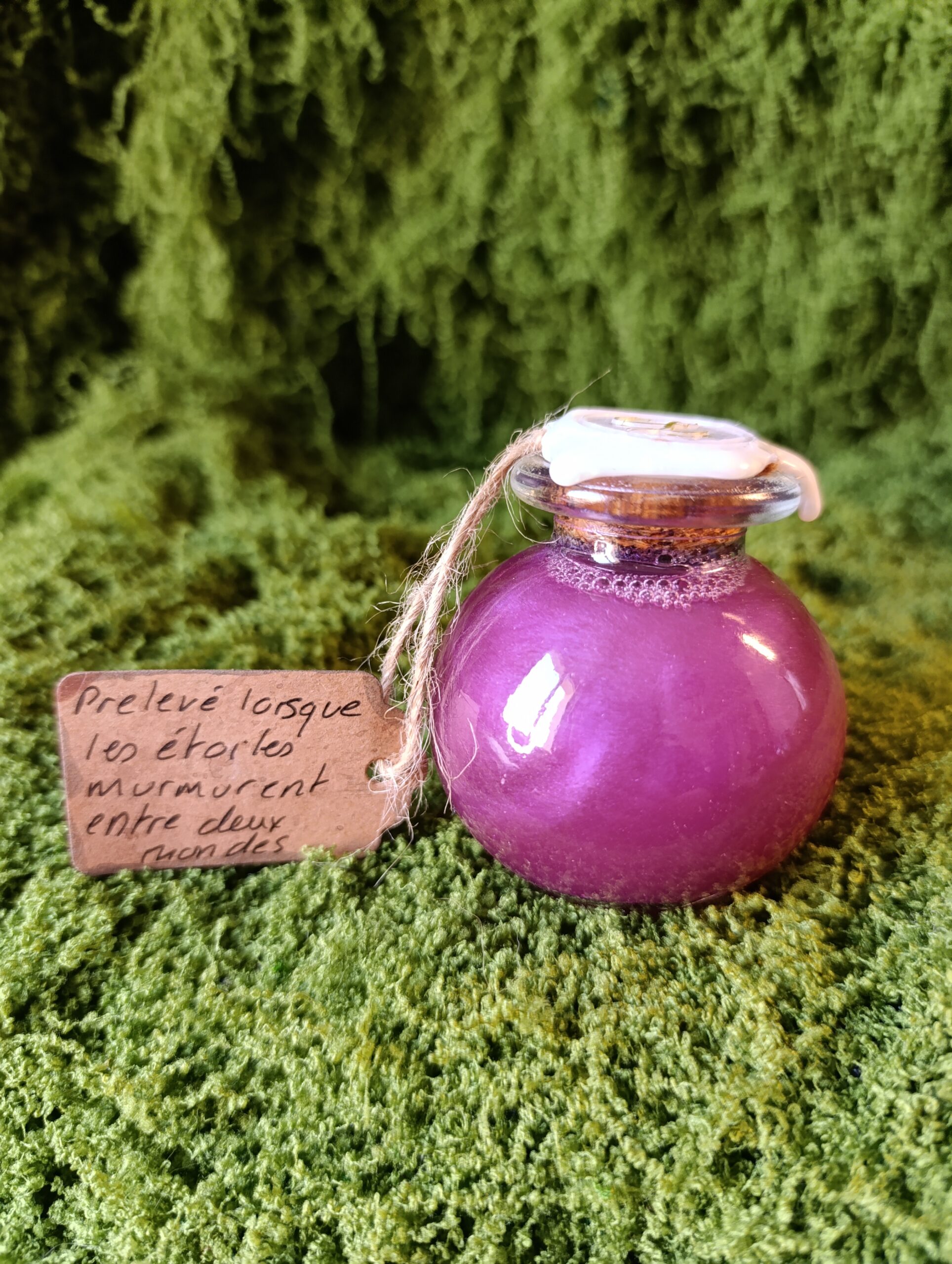 un souffle oublié, une brume venue d’un lac obscur, l’éclat d’une étoile tombée dans la mousse, ou encore une braise capturée au cœur d’un orage ancien.
