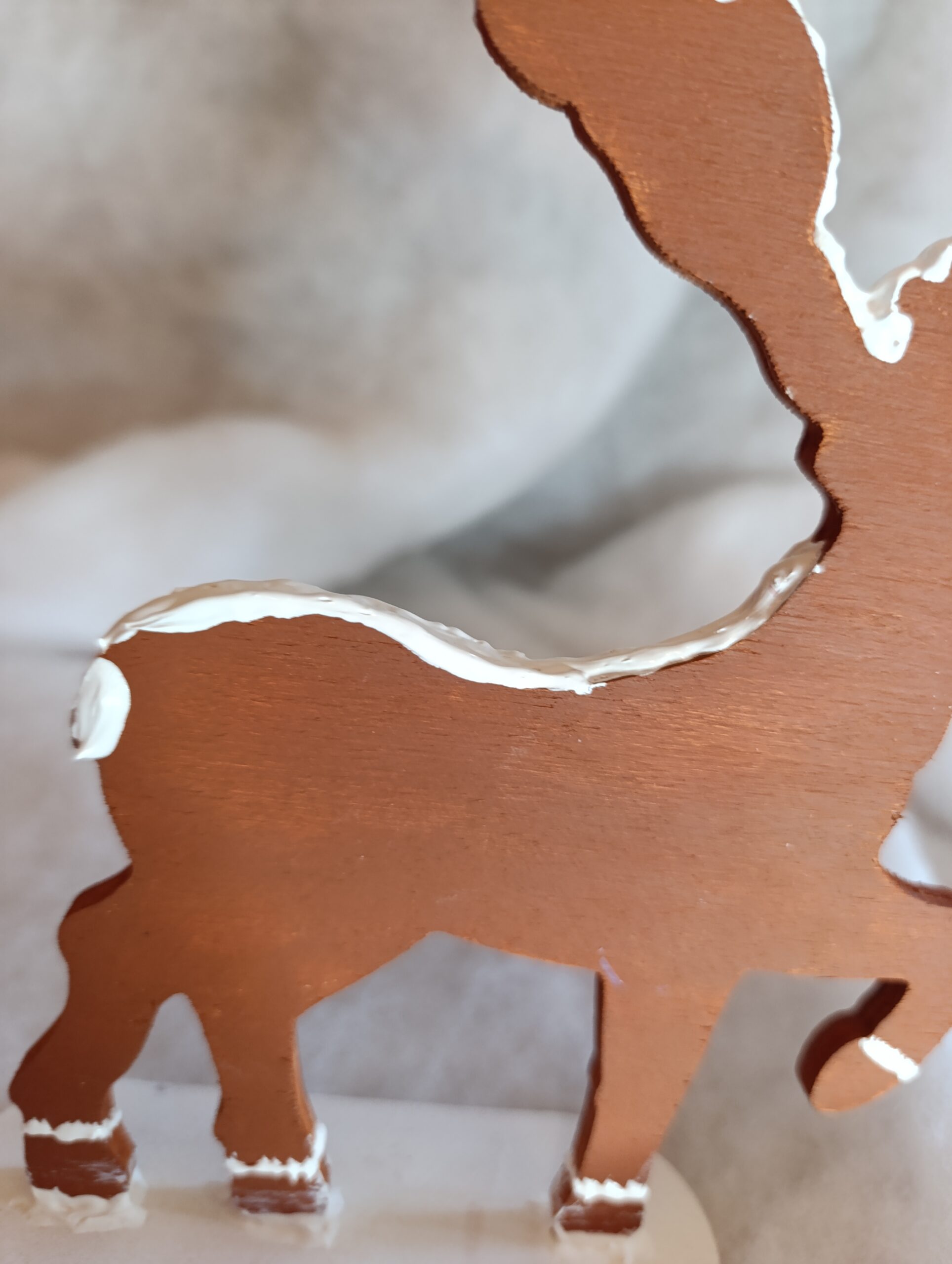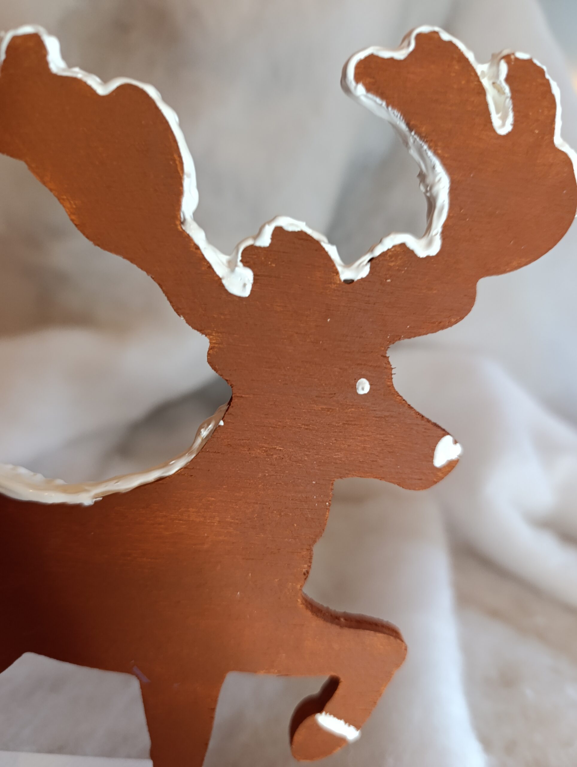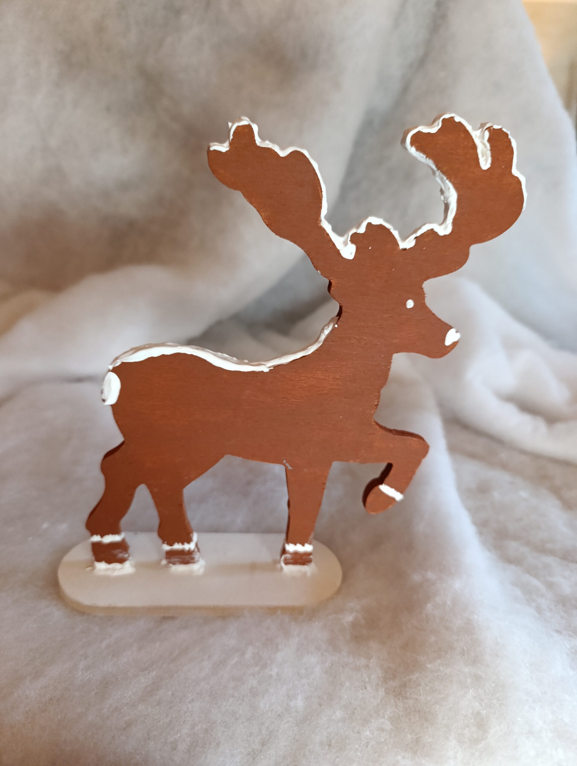 – Renne sculpté en bois et peint à la main