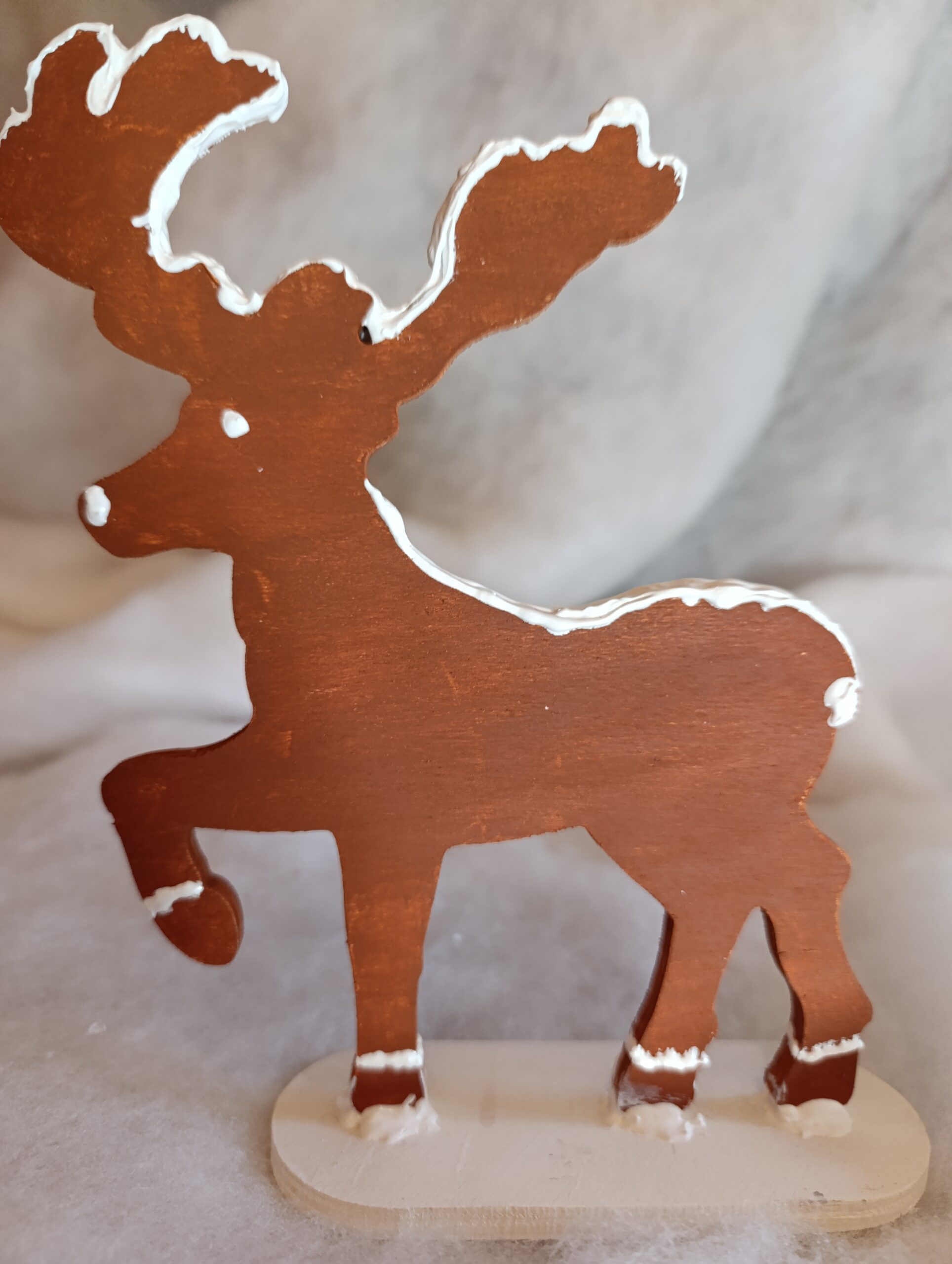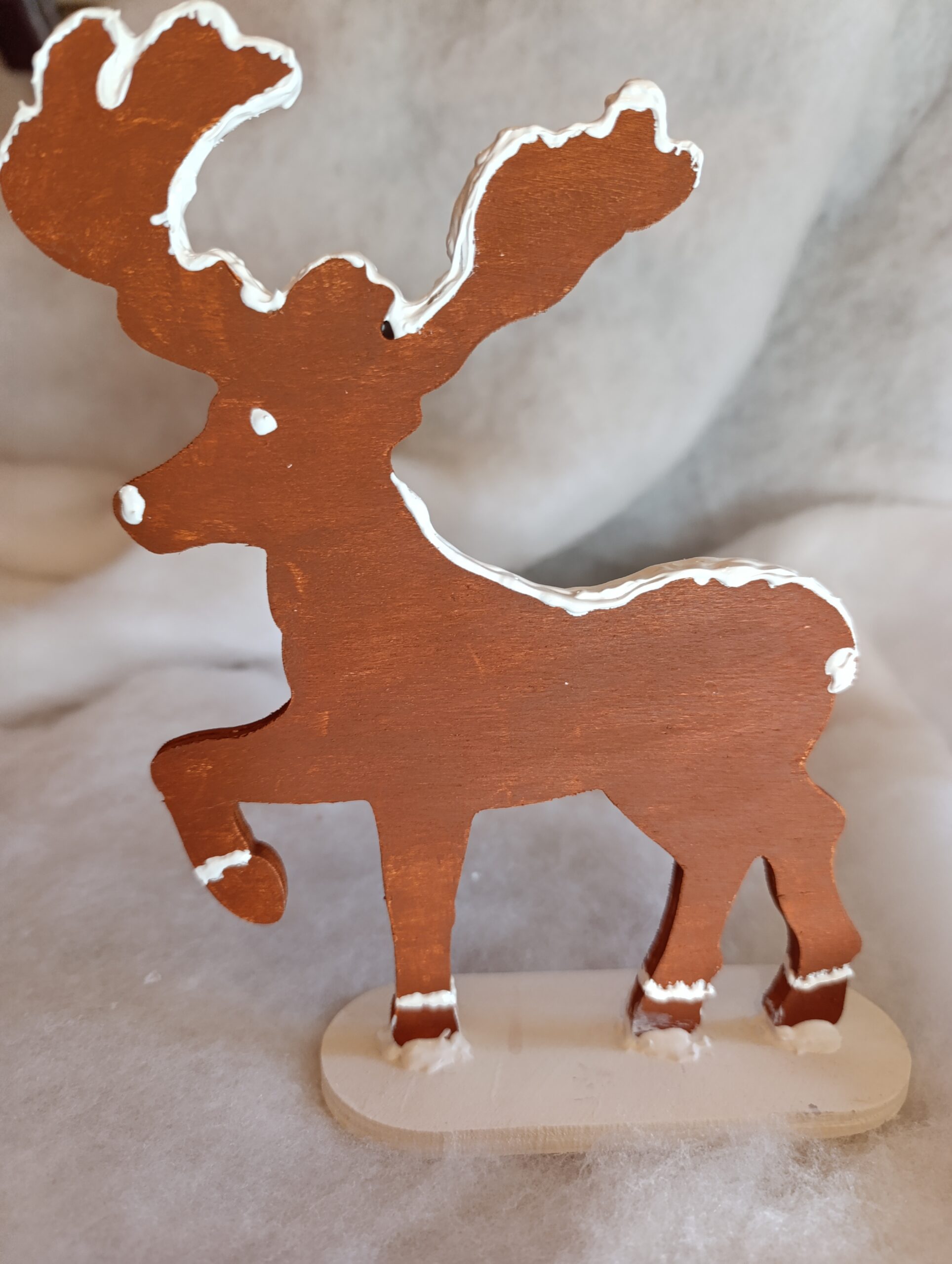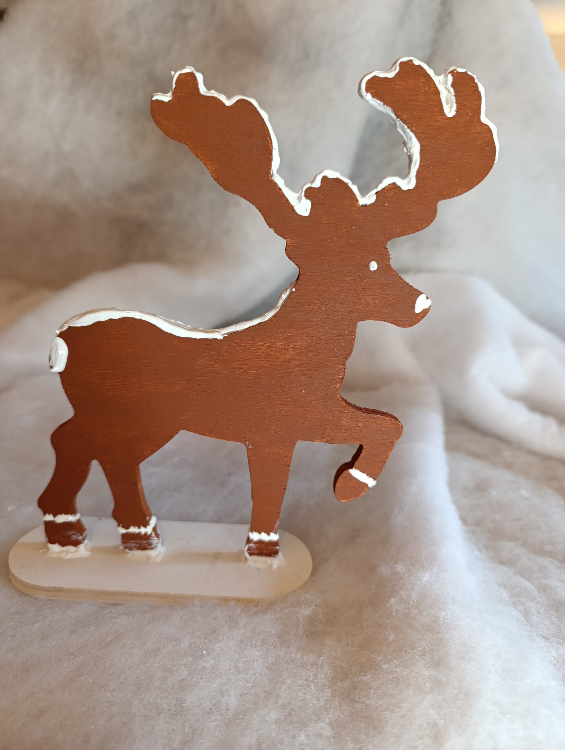 Chaque renne est une pièce unique, soigneusement peinte à la main, portant en lui le charme artisanal et la magie délicate du Village du Lys Enchanté.
